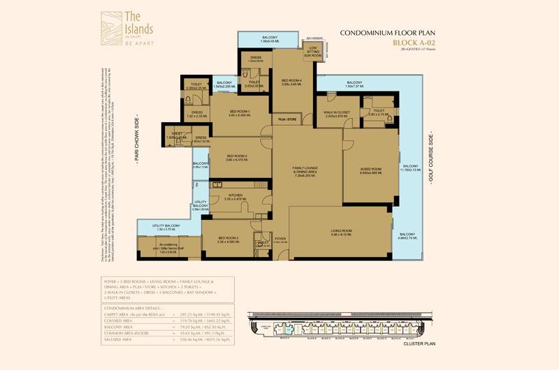 Residents of The Islands Project get benefit of unique Features like Sky walk on 24th Floor, All weather 4 level swimming pool, Ultra Luxury Club house in apprx 80000 sqft in Double heighted Ground Floor, Huge Balconies Facing Golf Course and Parichowk.